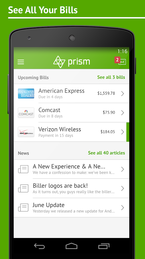 For keeping track of all your bills and when you need to pay them, some apps—like prism—offer automation that pulls your due dates into one spot for easy. Now, the company has updated their app for windows 10 mobile with a revamped design and new features. A good bill pay app is a step above your online calendar. The prism app said i have paid but they never got the money and it cost me $100 plus i had to pay 2 months in advance on both accounts!!! You won't forget to pay bills thanks to more billers than any other app prism has over 11,000 billers that you can connect to in the app, from national billers like usaa, verizon, ally auto.